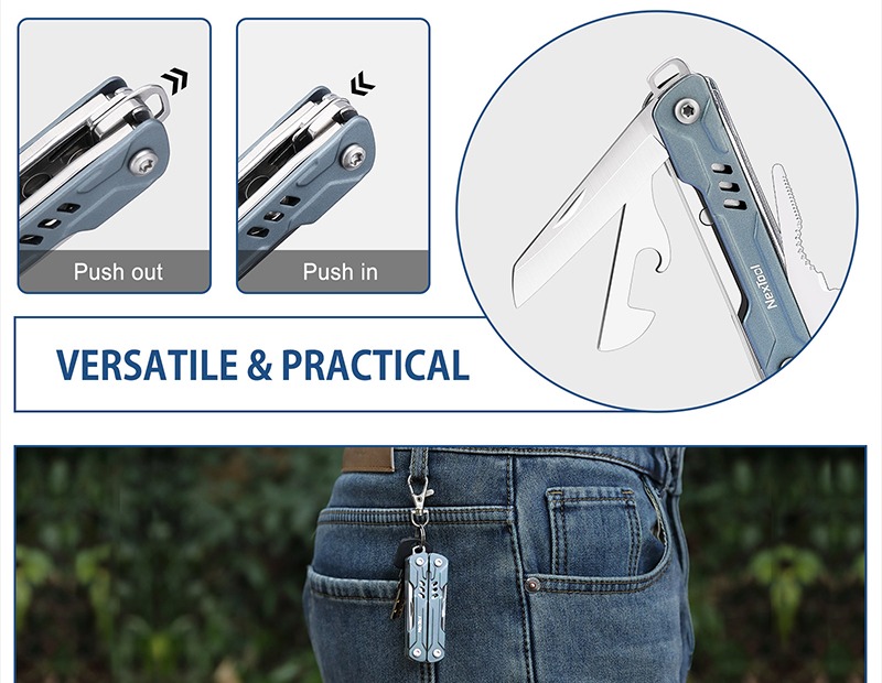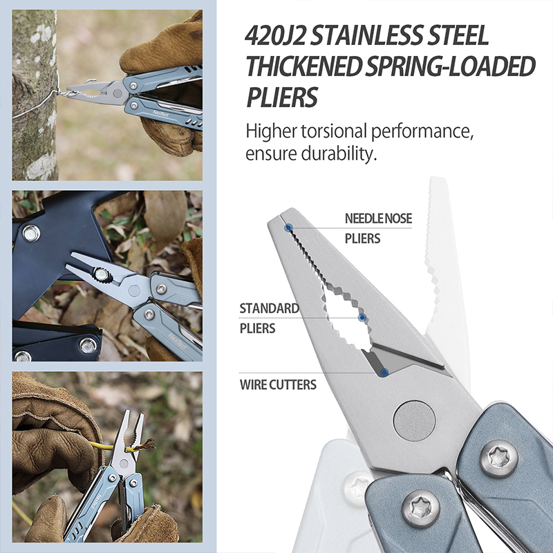 Компактный мультитул изготовлен из нержавеющей стали. Материал устойчив к влаге и механическим повреждениям. Имеет простую и удобную систему складывания. Возможность самопроизвольного раскрытия инструмента исключена.