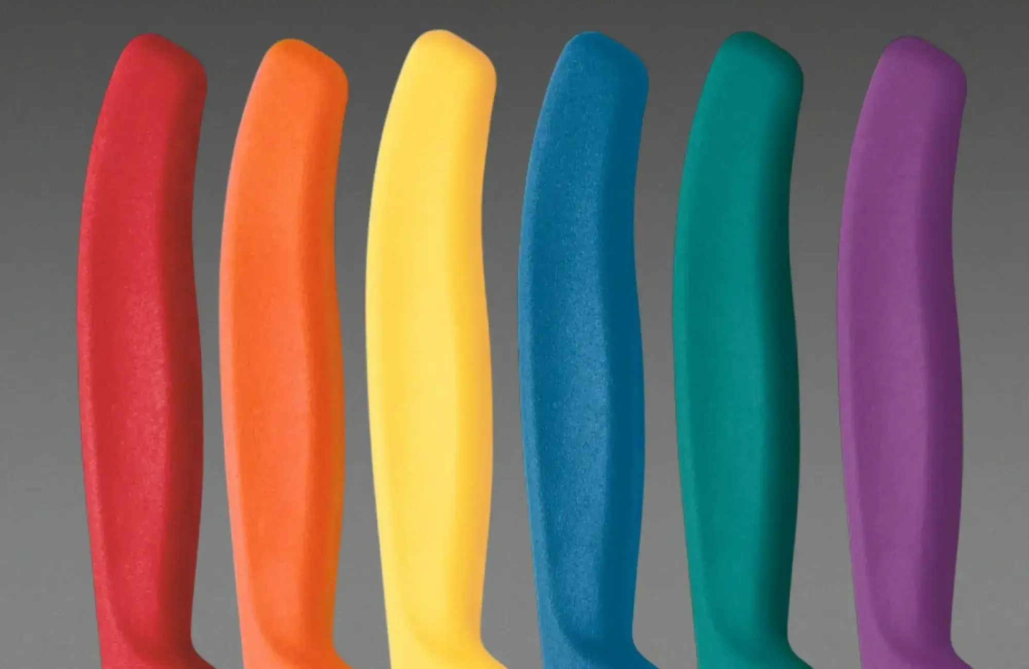 Набор состоит из 6-ти разноцветных универсальных ножей с супер острой серрейторной заточкой и закруглённым кончиком лезвия.