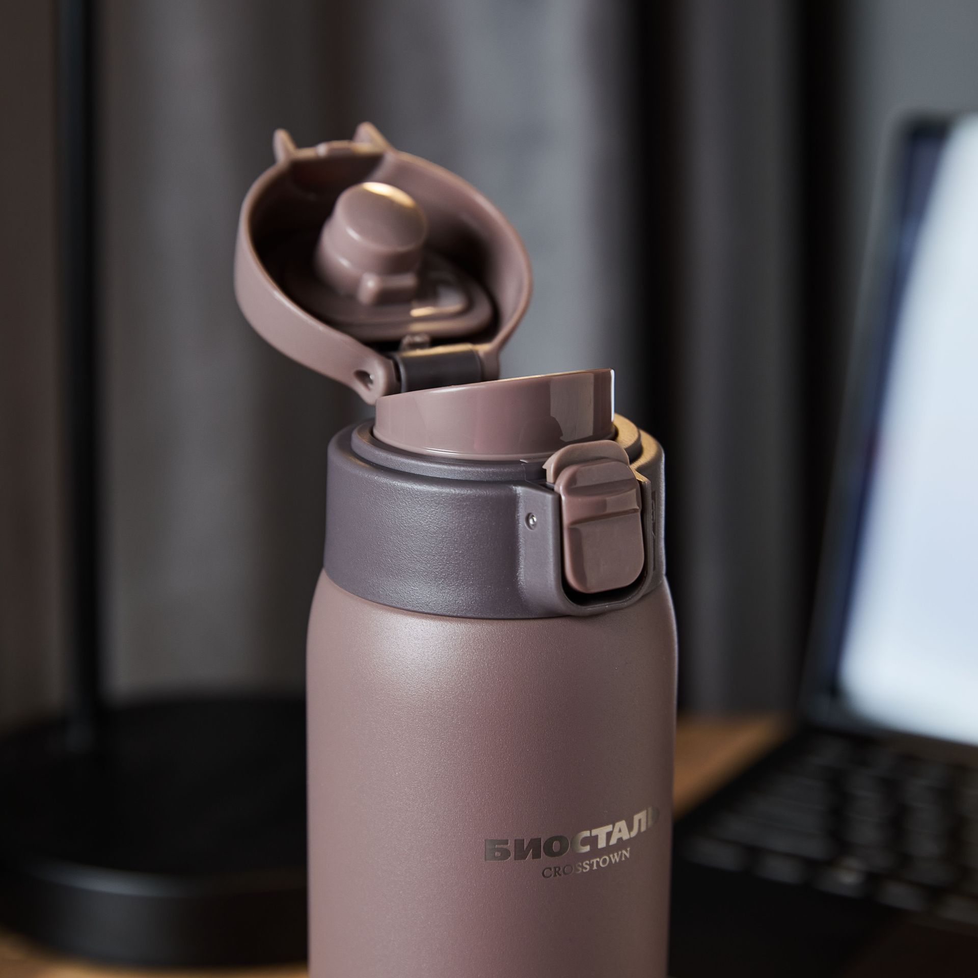 Термос-кружка NMR из высококачественной нержавеющей стали 18/8 (AISI 304) с кнопкой-предохранителем на крышке для блокировки случайного открывания, что гарантирует 100% герметичность. Крышка легко разбирается для мытья.