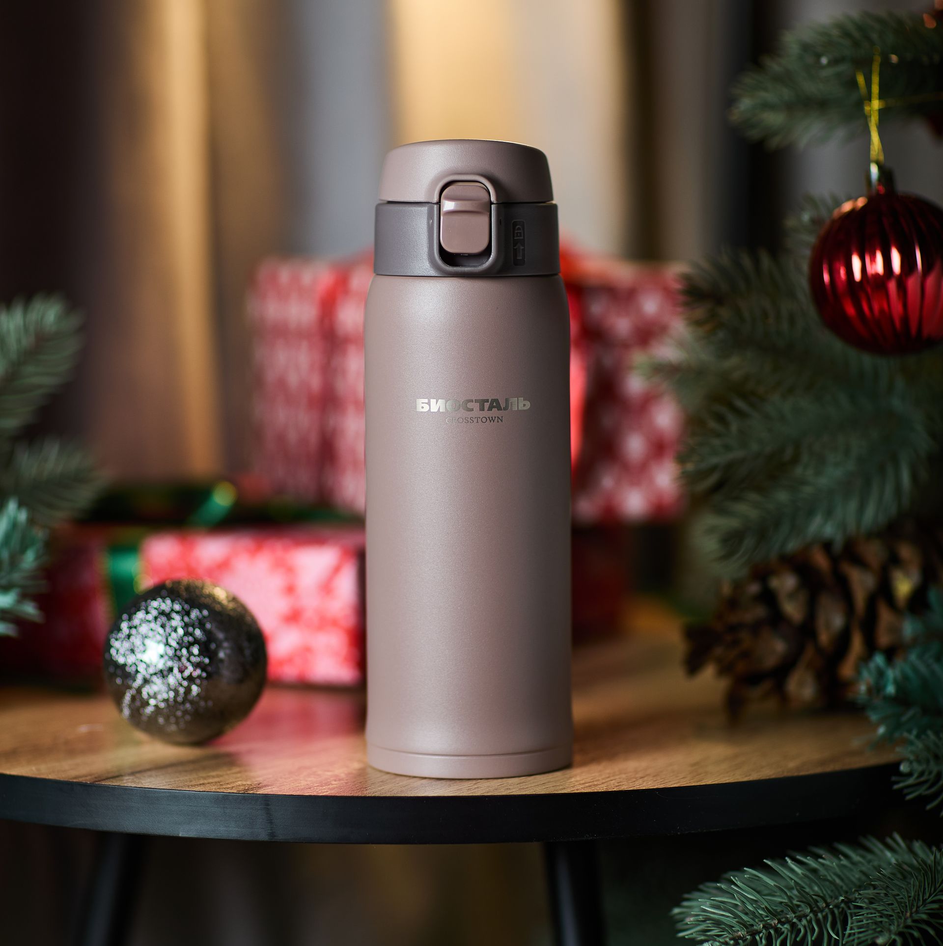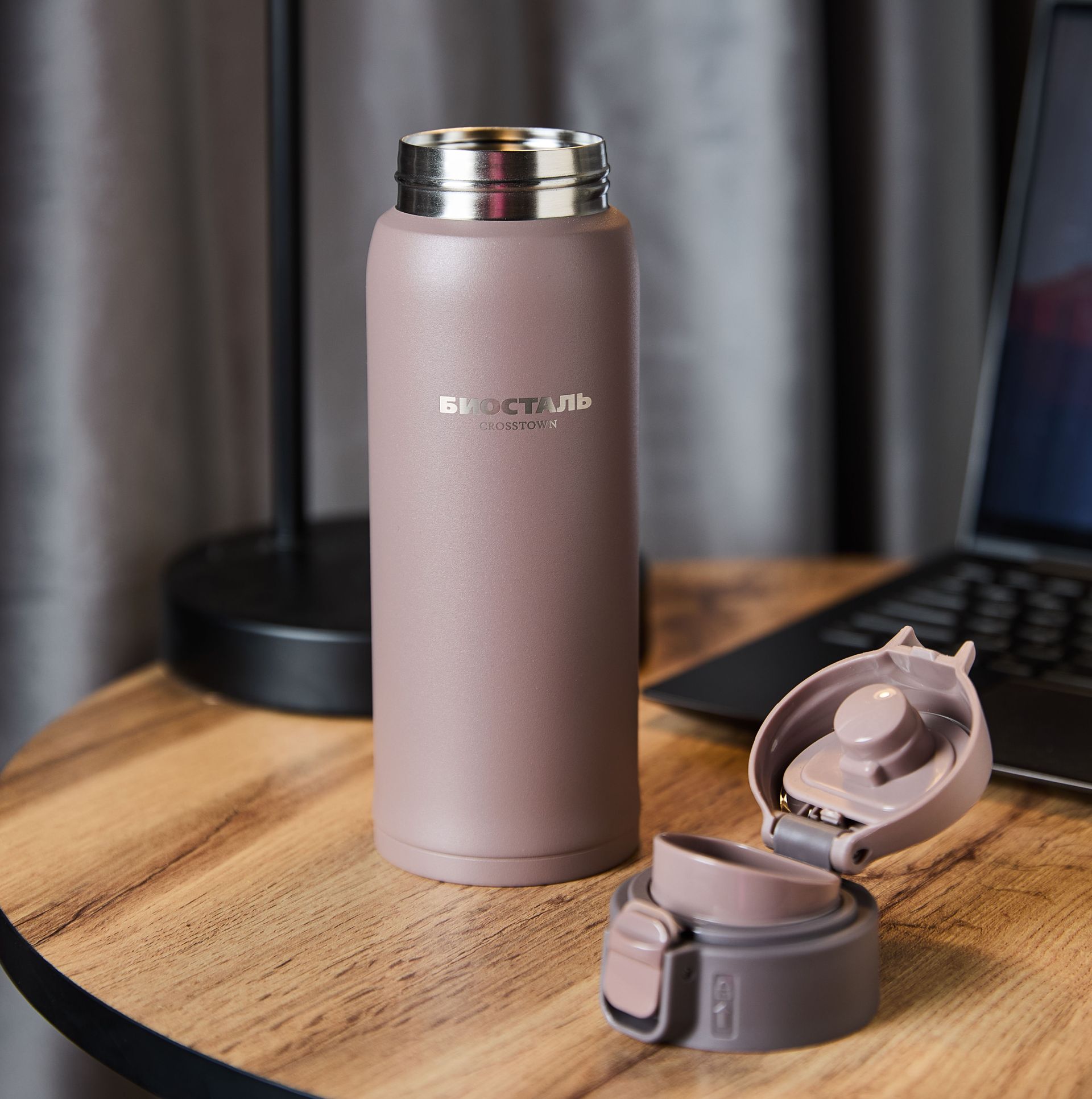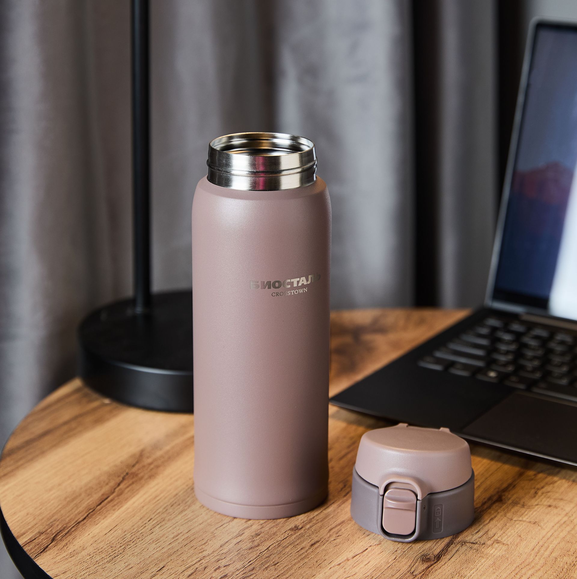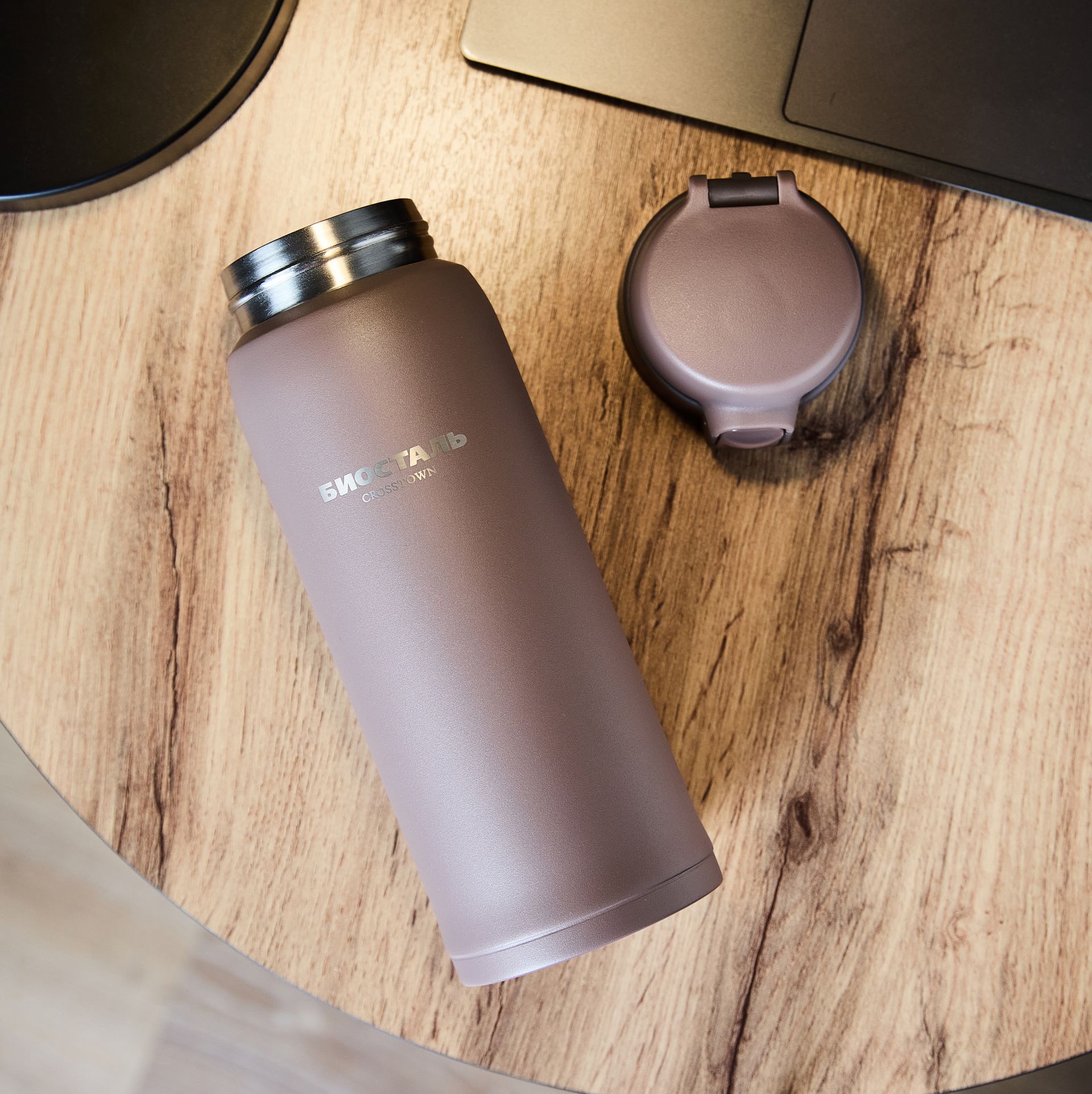 Форма термоса-кружки идеально помещается в автомобильный подстаканник.