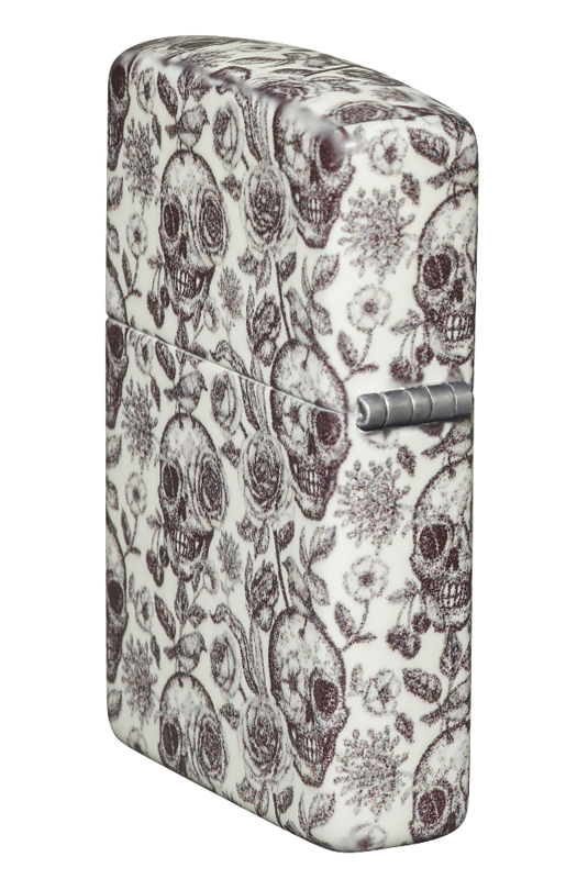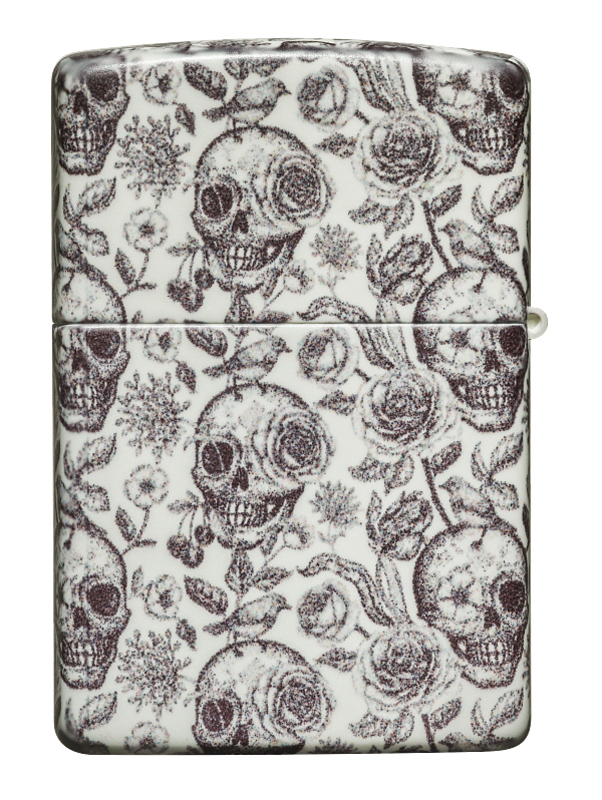Зажигалка ZIPPO Skeleton Design с покрытием Glow in the Dark Green, латунь/сталь, серая, матовая, 38x13x57 мм